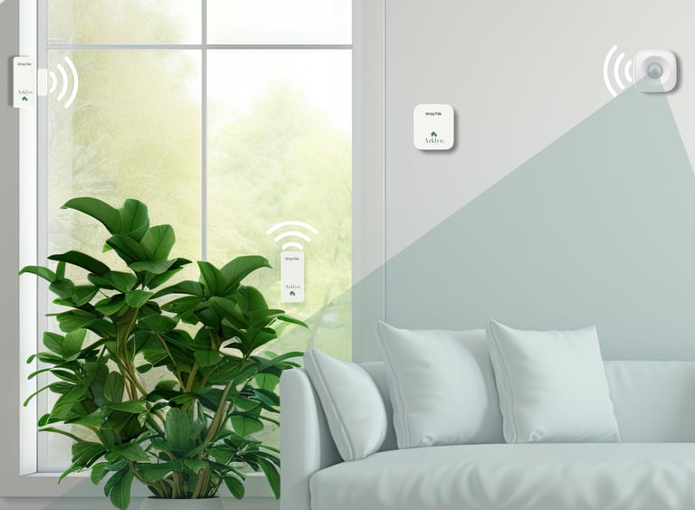 The Arklyn Hub gives you the ability to connect up to 20 sensors, 4 remotes (keyfobs) and 1 loud wireless siren to the alarm system. The sensors could be any combination of the supported sensors, i.e. cabinet/door/window sensors, motion sensors and glass break sensors. The paired remotes can be used to arm/disarm the Arklyn Hub without using the mobile app. Great for homes with children or elders. Check out the accessories here.